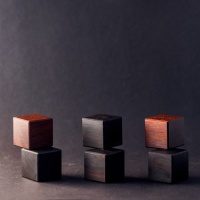 The cubes are made out of ebony and rosewood.
