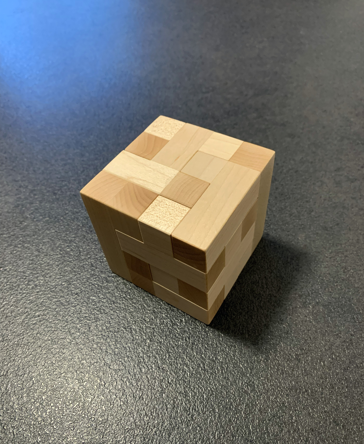 When you look at the puzzle, you might think it is a TIC (Turning Interlocking Cube), but all moves in this puzzle are linear (right/left, in/out or up/down). No twists or turns. But the solution is far from being trivial.