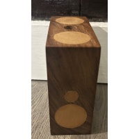 The idea for this puzzle from a customer. What a riot this one is. You have 9 pegs, all of different lengths, and you have 9 holes, each of different depths, and you have an angled surface to mount them into. The object is to insert the pegs such that they all align up at the same height. Sounds easy doesn't it.... HA! Keeps you smiling and it is something anyone will attempt. Good solution time is 20 mins.