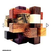 2-in-1 is a twelve piece interlocking burr with a unique solution and a couple challenges; the first puzzle is to figure out what shape it makes, and the second is to make that shape. Ingenious design using full notches makes finding a solution more difficult, as the open spaces concealed in the puzzle allow more false starts.