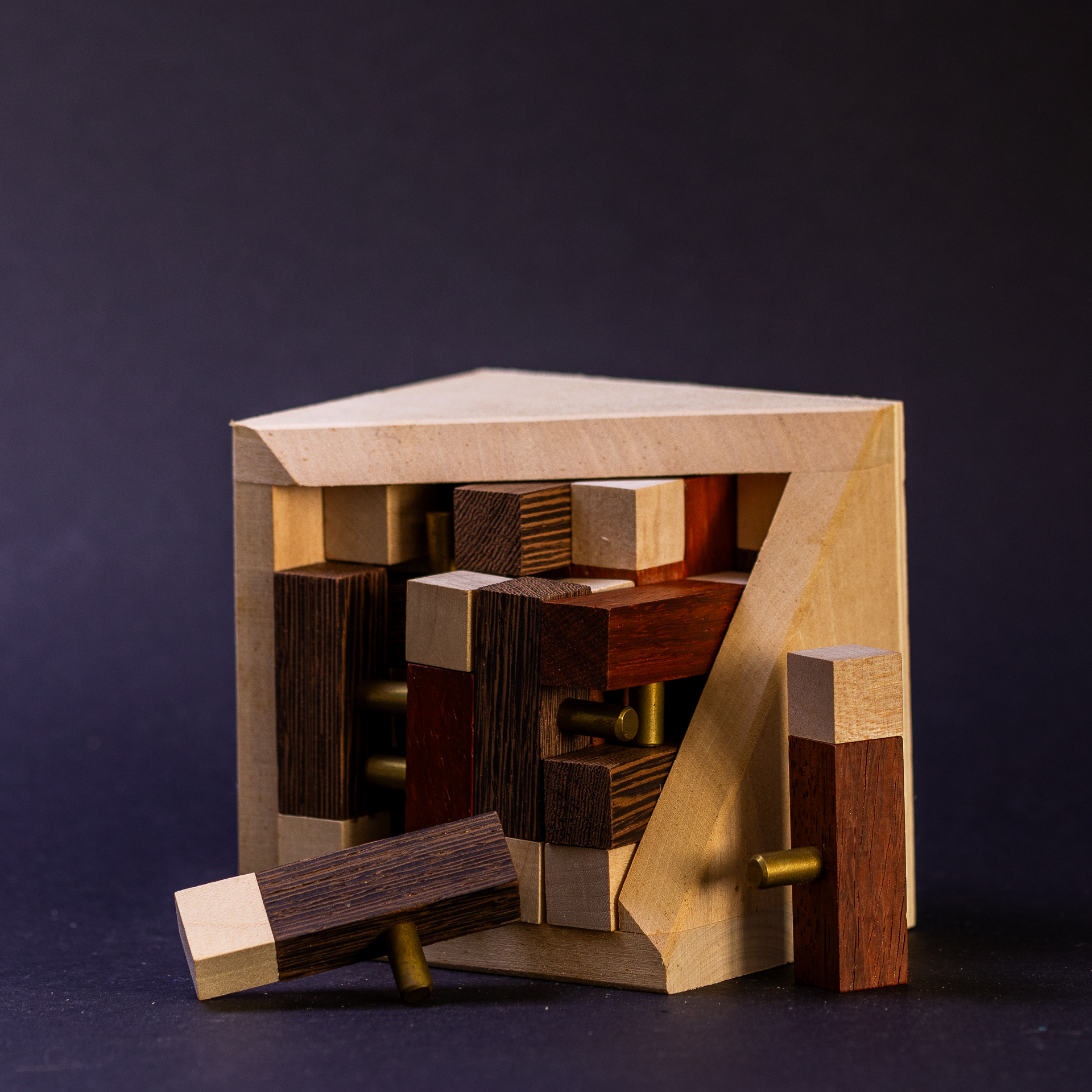 There are some nice exotic woods like Wenge and Padauk as well as some brass pins.