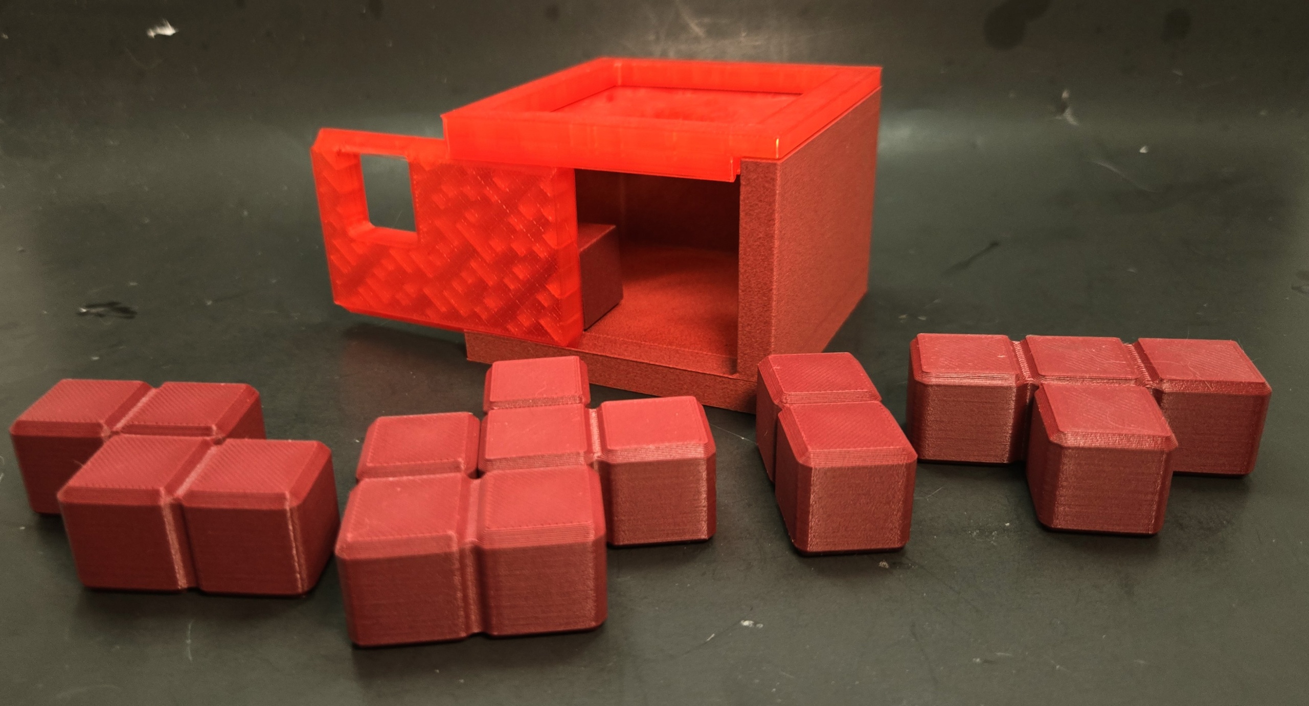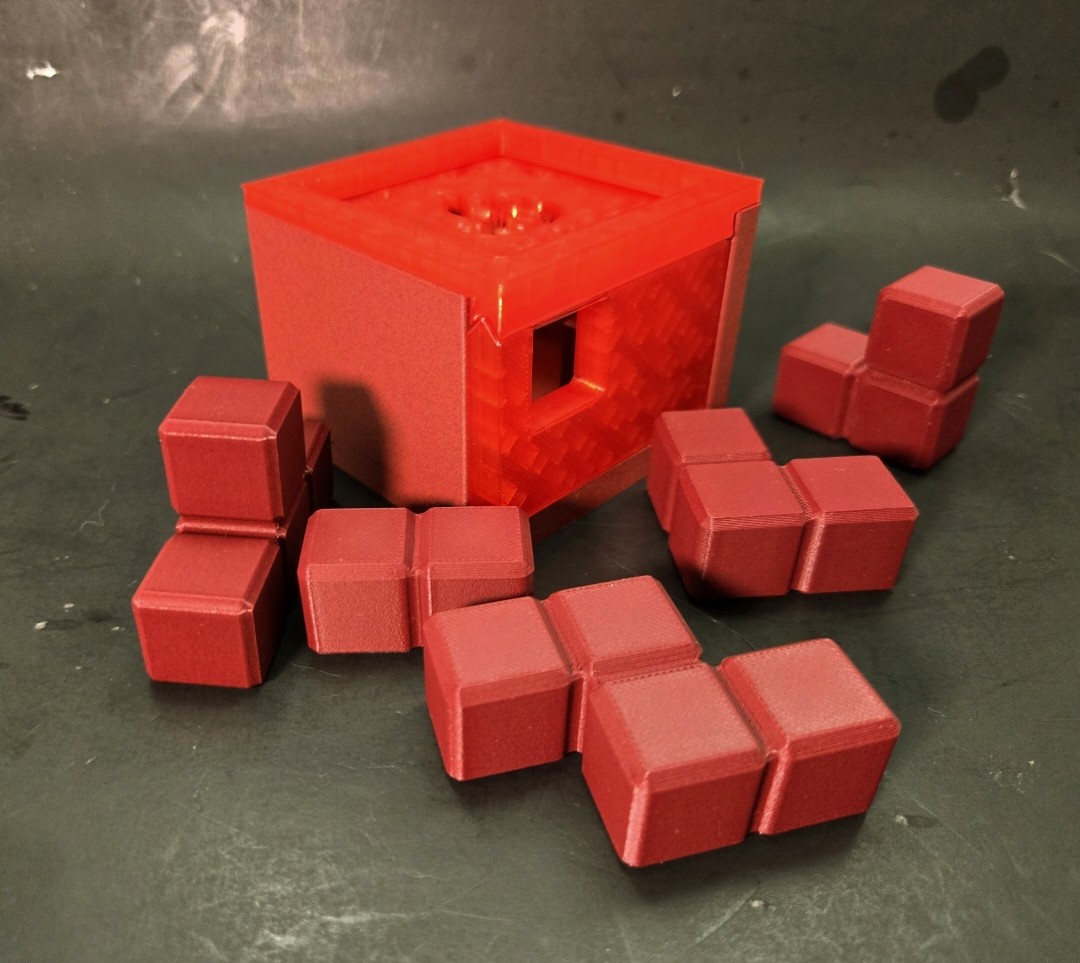 Just 5 simple pieces and 16 voxels of space, with an additional fixed, and moving voxel to contend with.