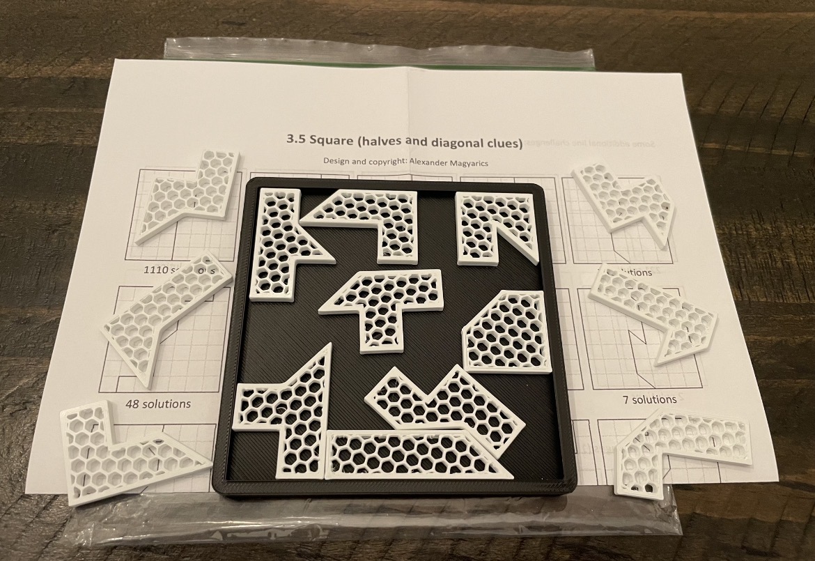 Goal: Pack all the pieces into the tray to create the designs. Multiple challenges.