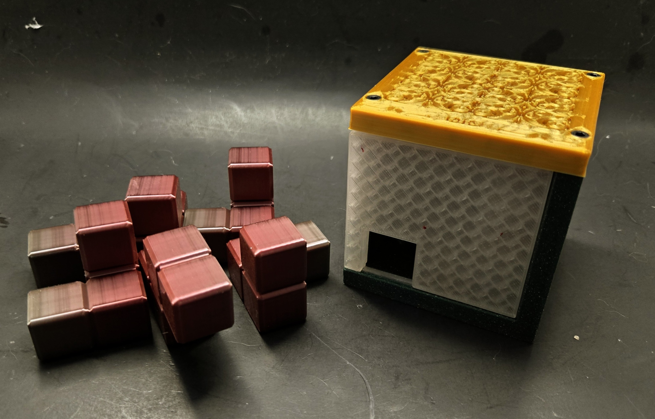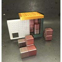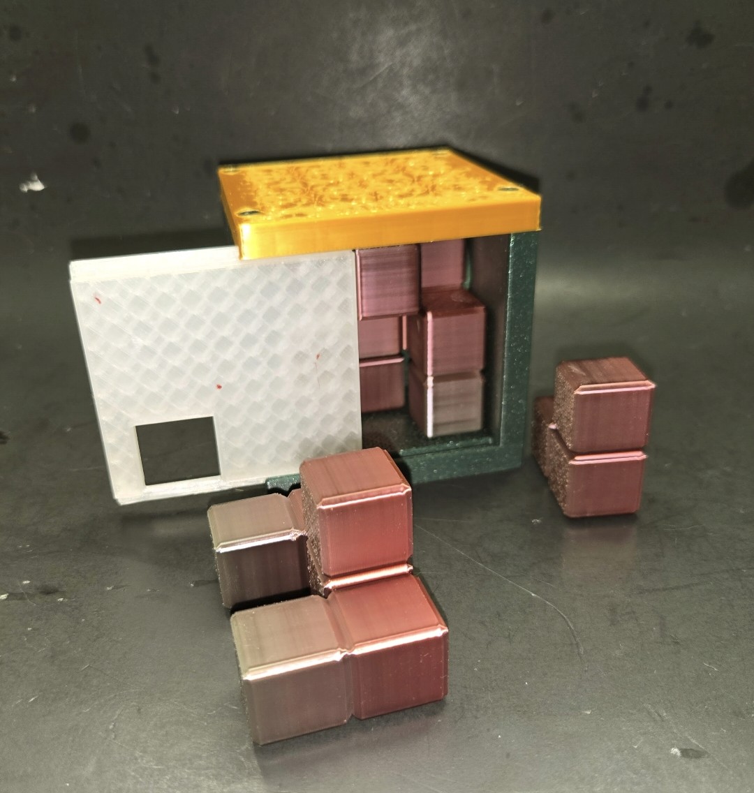Very challenging packing puzzle with sliding door mechanics. Only about 15 copies are out there.