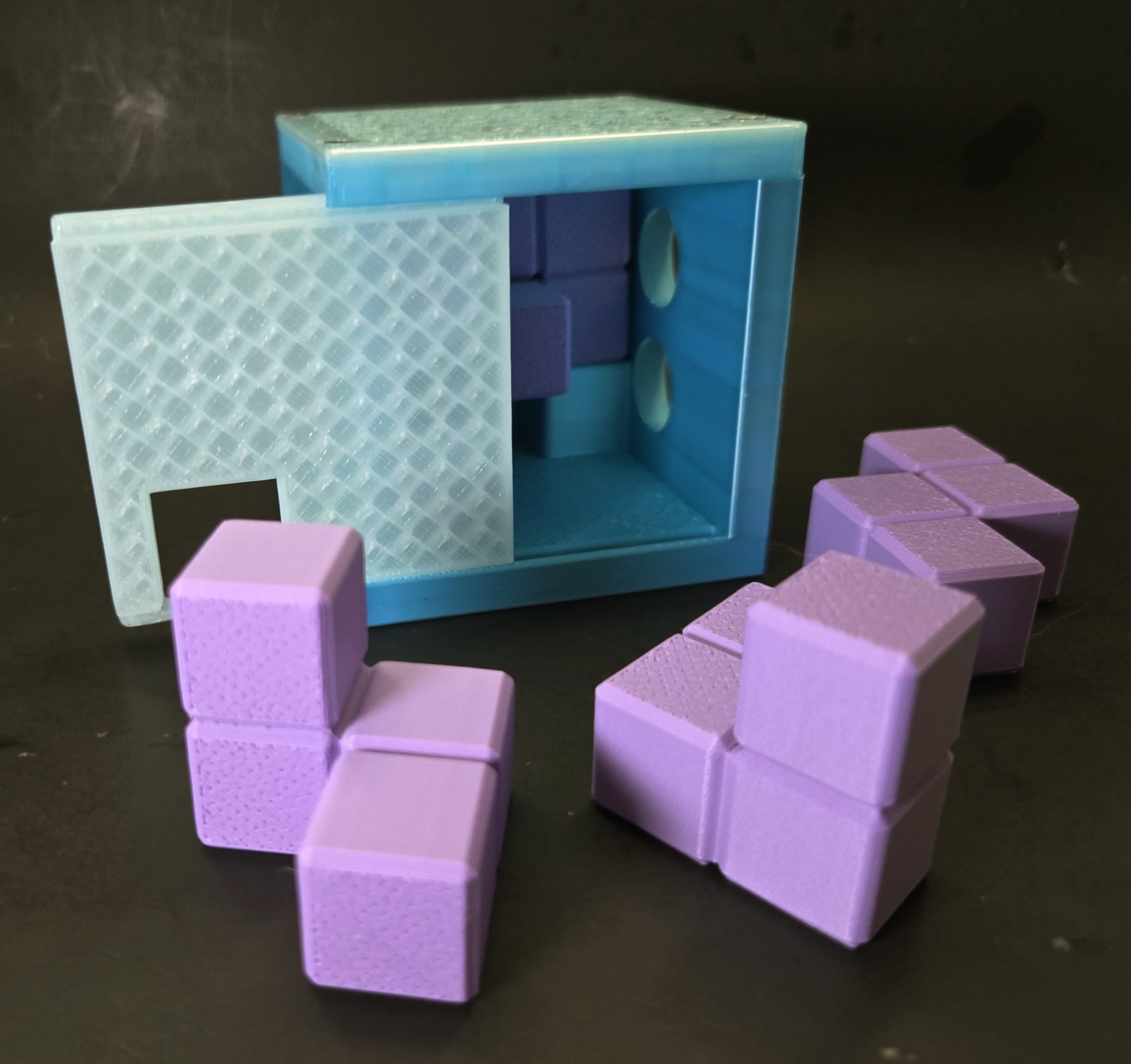 Very challenging packing puzzle with sliding door mechanics. Only about 15 copies are out there.