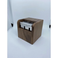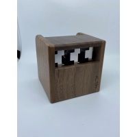 5L is our first combined wood and metal puzzle. The box was constructed with rounded curves on every edge, resulting in a pleasing tactile sensation. The precision-milled aluminum pieces slide smoothly into place with a satisfying click. Once assembled, the contrasting dark wood and bright metal create a visually compelling combination. 5L Bin puzzle just begs to be picked up and solved repeatedly.