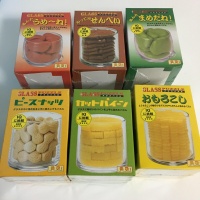 6 Glass Food Packing Puzzles made by Beverly(known "3D Jigsaw" Series.) They are reprinted version of Toyo Glass.