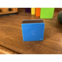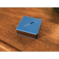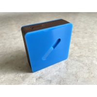 7.5cm square and fits nicely in the palm of your hand.