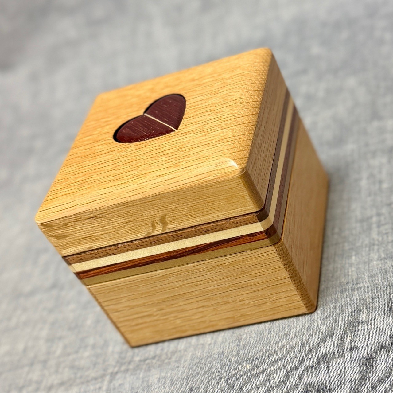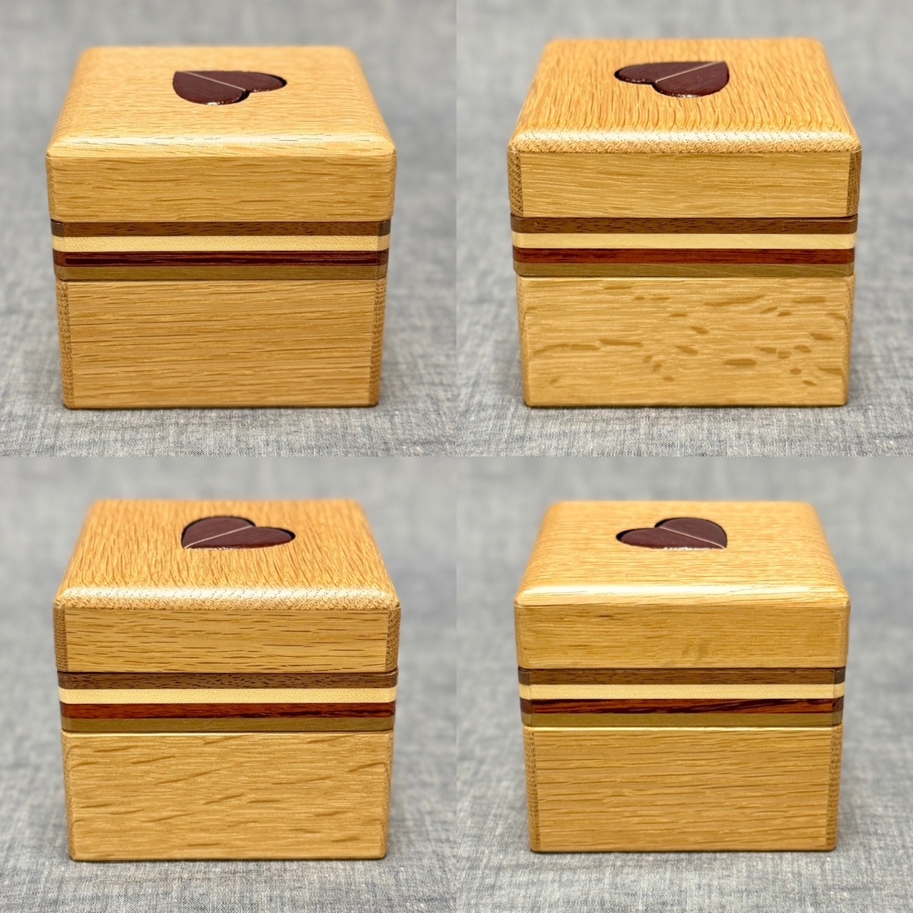 Karakuri Test Tube Box Karakuri box is the ultimate woodworking item, combining the idea of "karakuri" handed down from generation to generation with new "karakuri" create from the rich imagination of craftsmen, which are then realized through precise and delicate processing.Also this box is decorated with marquetry (Hakone Yosegi).*Brand new condition, with the Box & Solution envelope, 3 Glass test tube included.The box mechanism works perfectly. Size : 125×115×100mm————————...