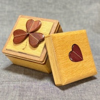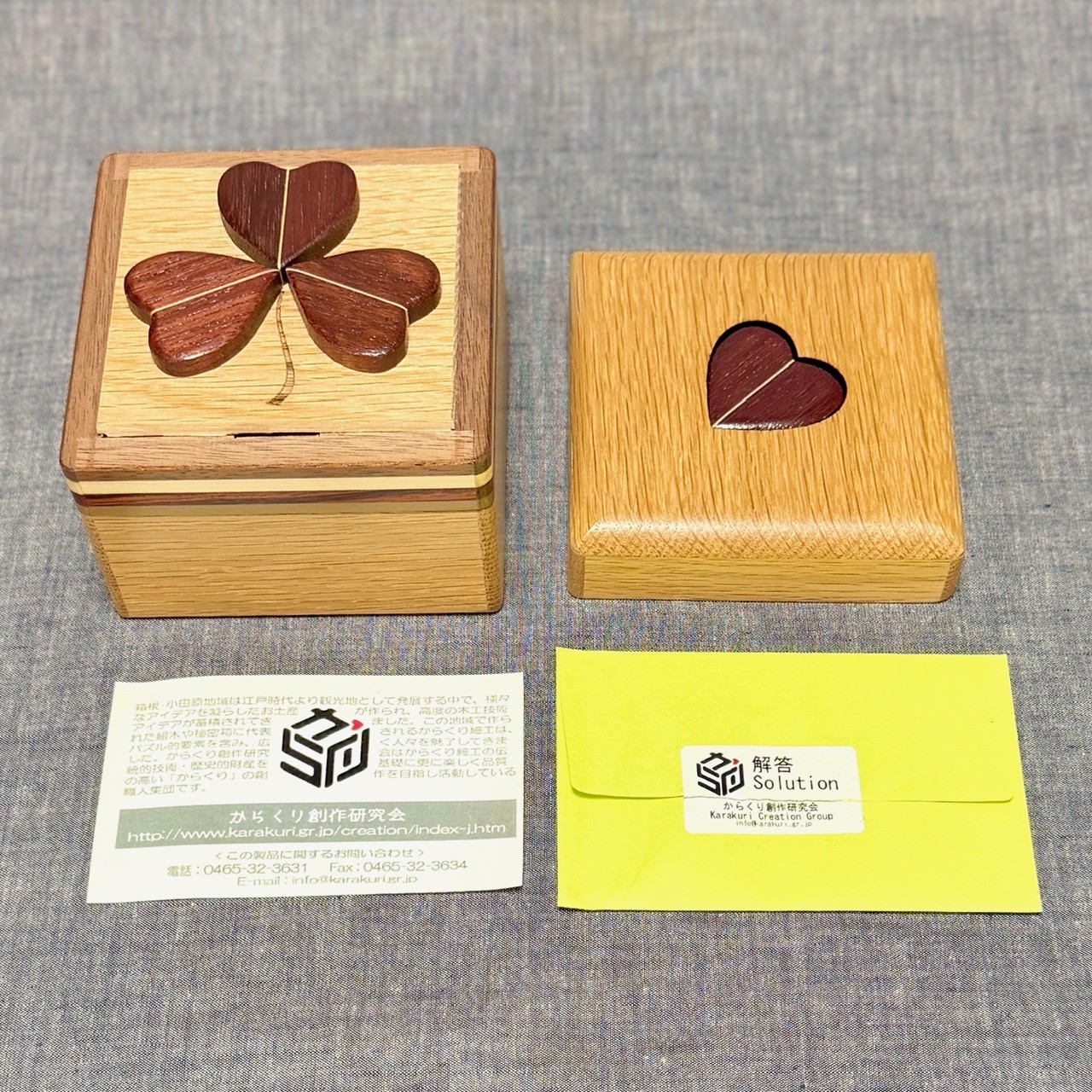 This work is composed of three parts; the lower box, the top heart and the 3-leaf clover with three hearts. The lower part does not open freely and the top heart looks a bit lonely. In the middle, the 3-leaf clover composed of 3 hearts is the same as the heart on top. Maybe people who are quick to understand have already noticed the answer. But can you move the devices as you think? I hope your own “Chance Meeting” will come to you soon!