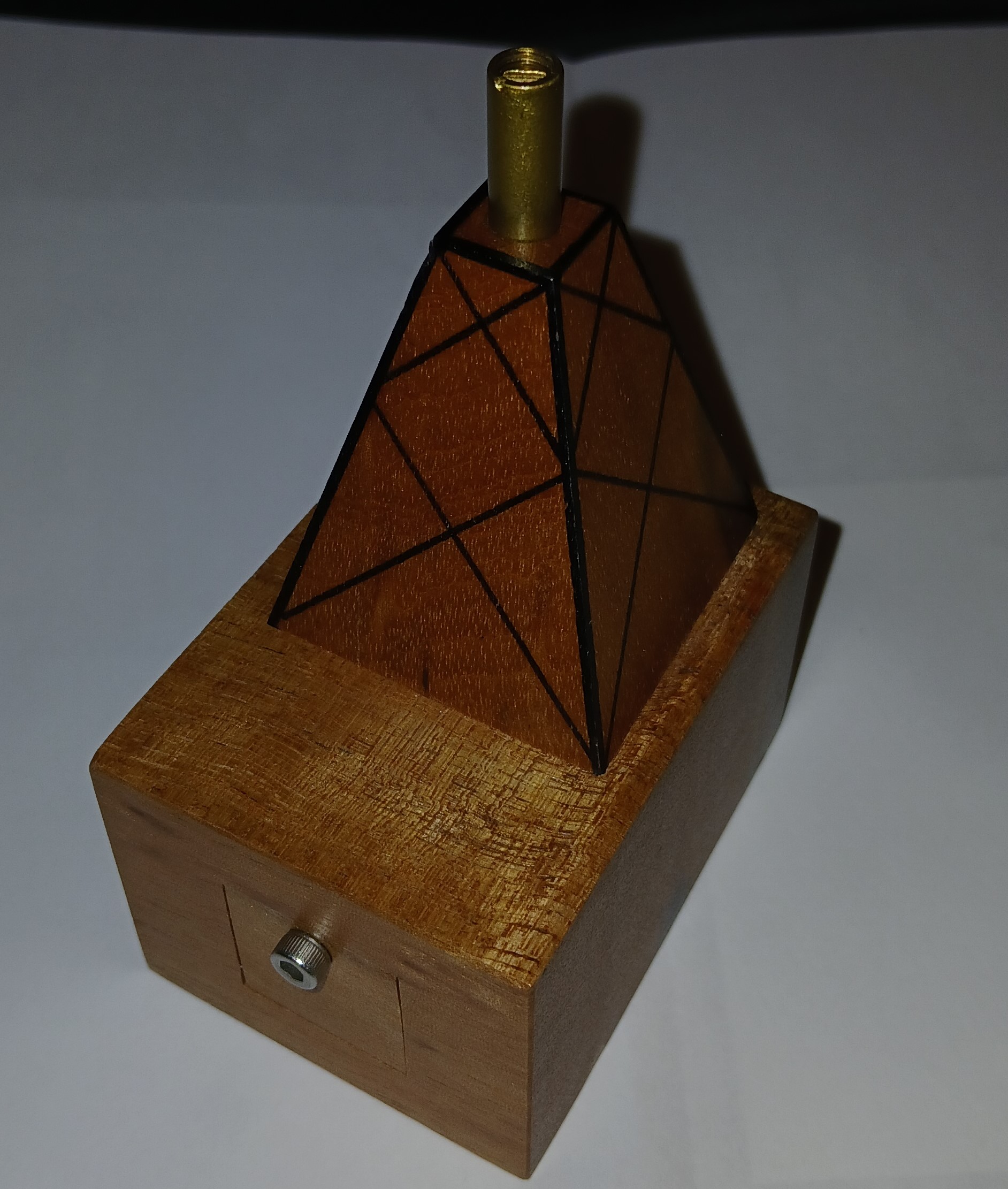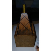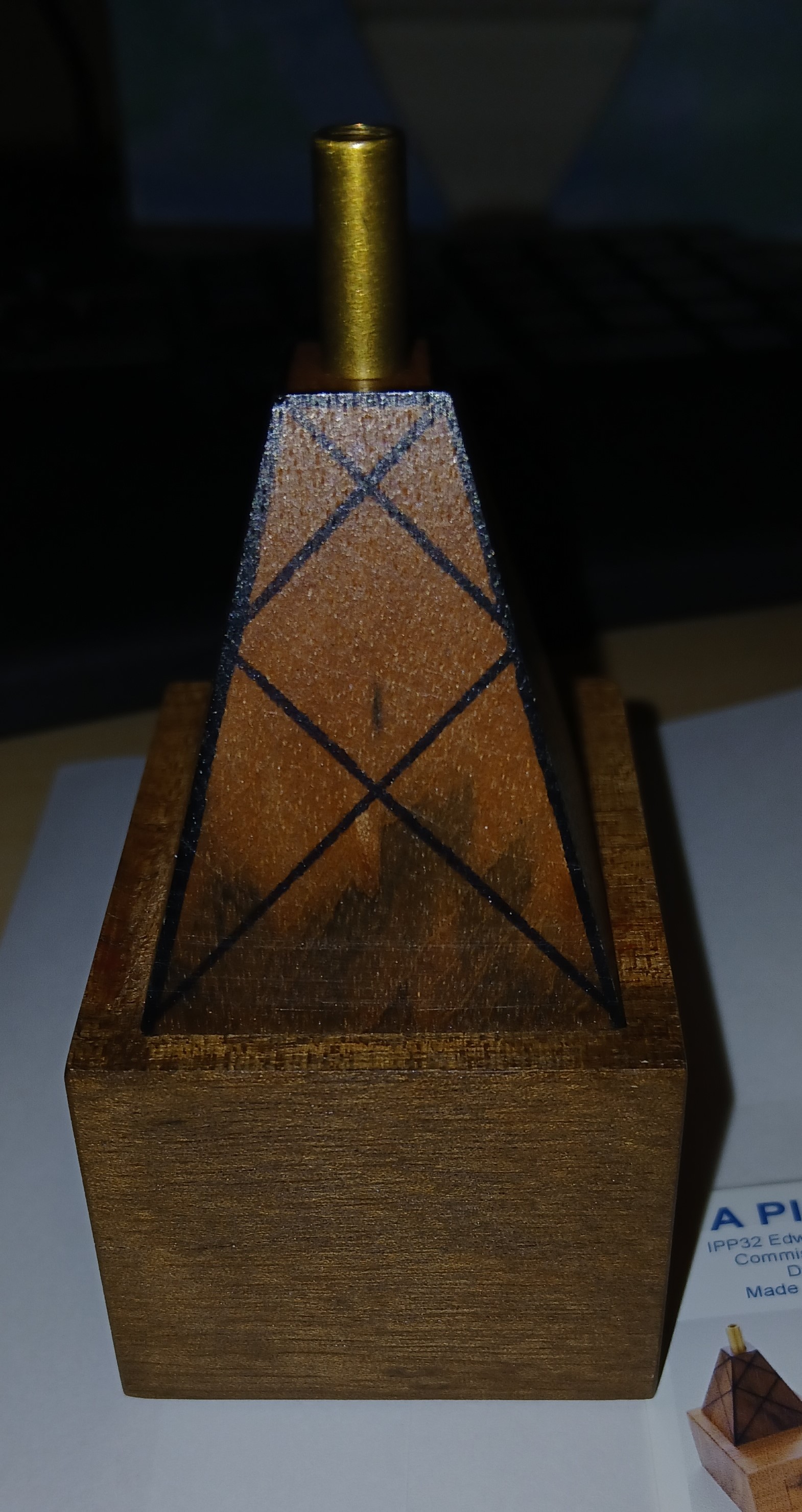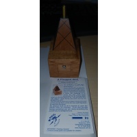 Puzzle is made from Queensland Walnut and has fabricated brass and steel elements and springs.