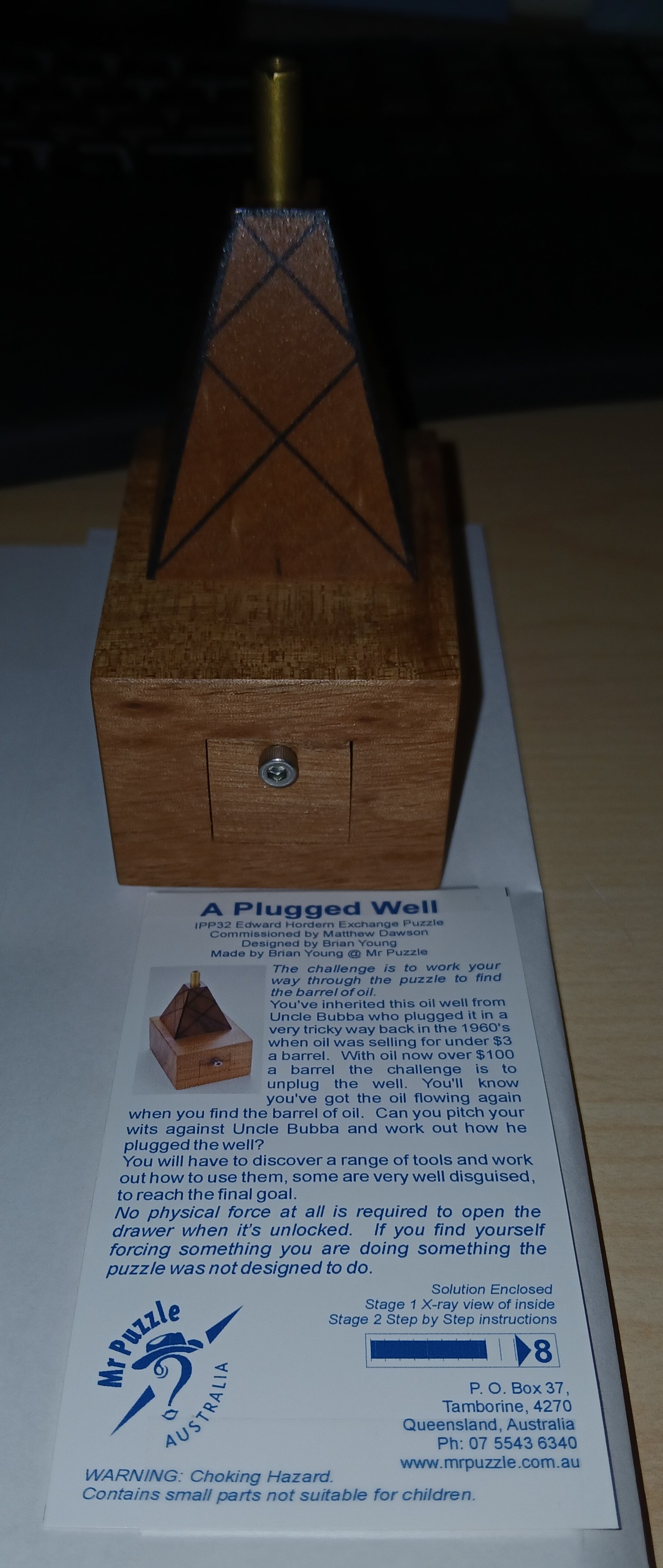 Can you pitch your wits against Uncle Bubba and work out how he plugged the well? You will have to discover a range of tools and work out how to use them, some are very well disguised, to reach the final goal. No physical force at all is required to open the drawer when it’s unlocked. If you find yourself forcing something you are doing something the puzzle was not designed to do.