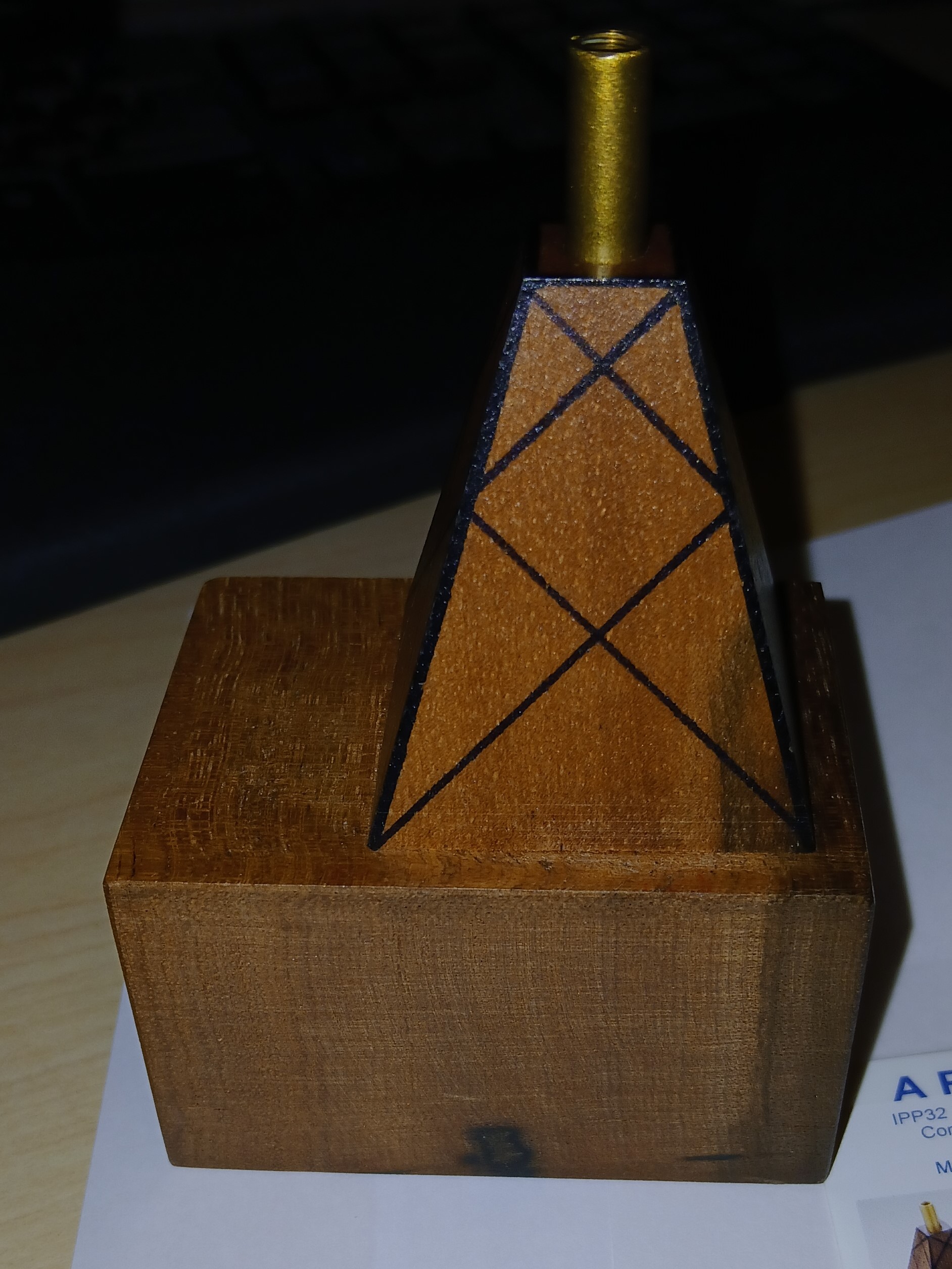 Size of base is 48mm x 65mm x 40mm. The oil rig is 100mm tall.