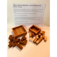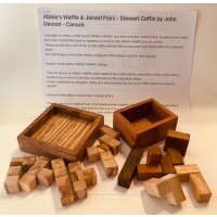 “The six pieces of Abbie’s Waffle, each made of four cubic blocks, assemble various ways onto a square tray or into a 2x3x4 box, as indicated on the instruction sheet.