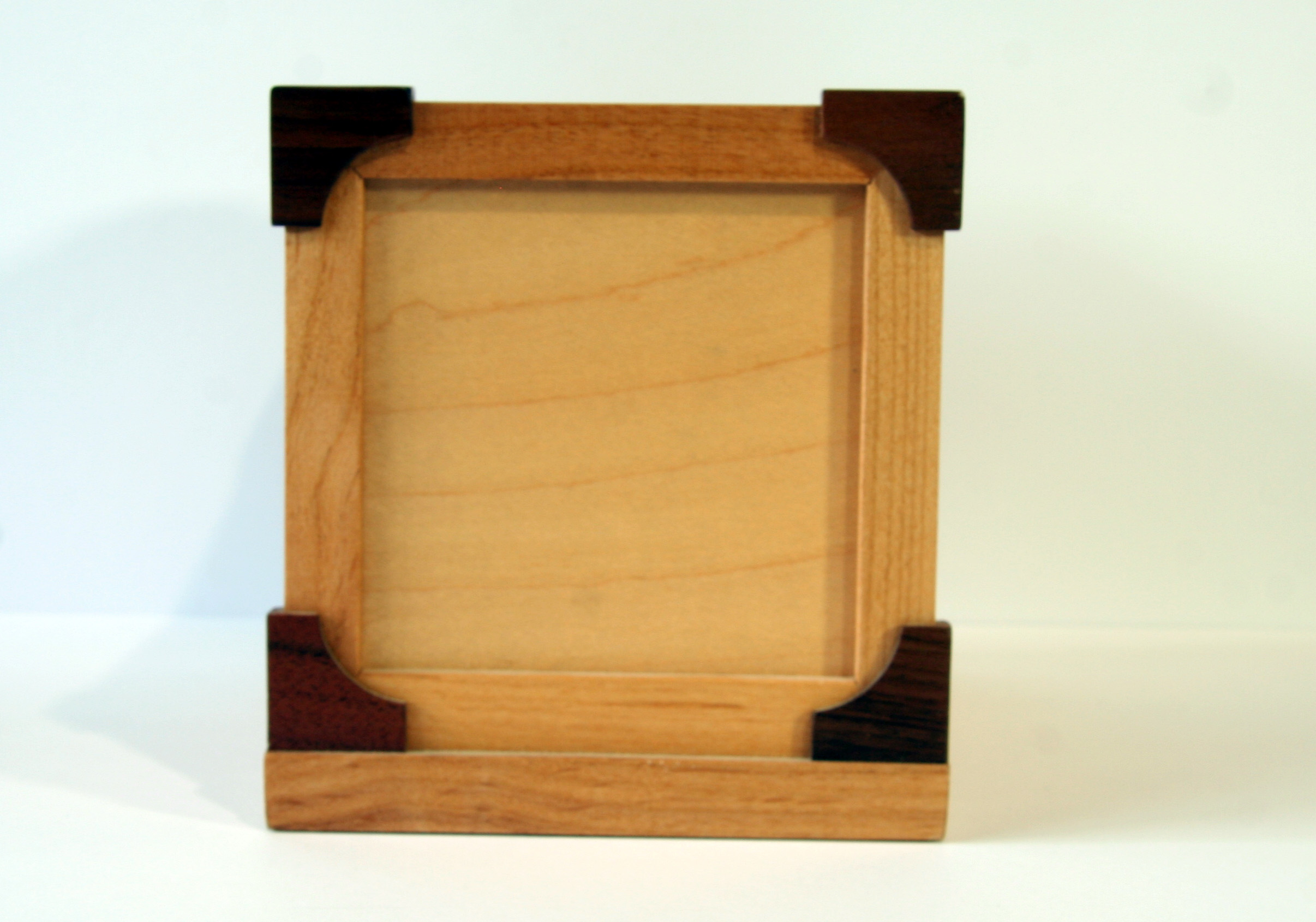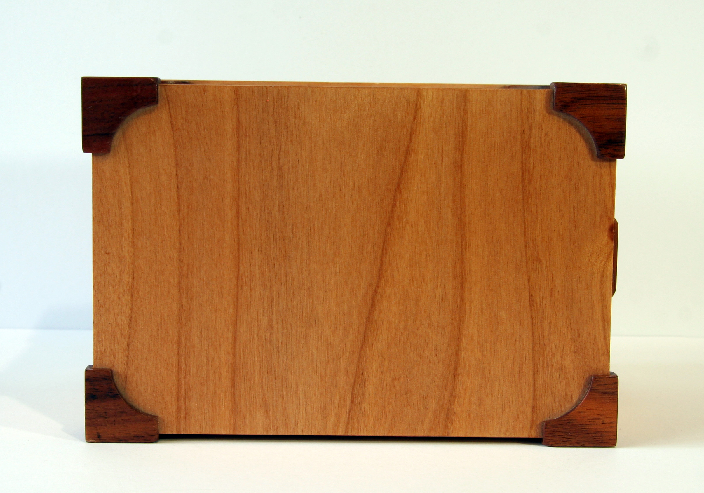 designed by Dic Sonneveld in the late 90's and made by Tom Lensch, though i don't know what year he made it.the cage is made from blue mahoe, avodire, and primavera, with burr pieces made from granadillo (a.k.a Mexican rosewood). this is the complete description from puzzleworld.org: A three-piece burr is contained within the cube. It is very difficult to disassemble and assemble, requiring rotations and other unnatural acts in addition to the usual burr movements. ...