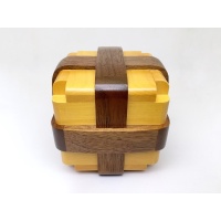 The newest, "PARCEL BOX" was made like an interlocking puzzle.  The puzzle box is crafted from Japanese Torreya, and walnut and measures 80X80X80mm.