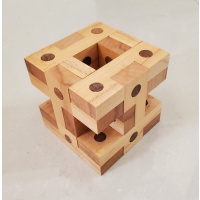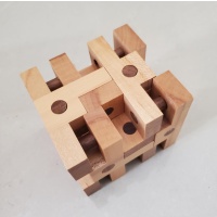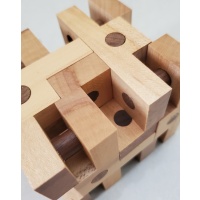 Fit and construction is very nice on this puzzle, not too tight, not too loose, just right. Brian made the puzzle with some fancy-dancy gold pins. I couldn't find any gold-plated walnut, so my version is offered at a 71% discount off his price :)