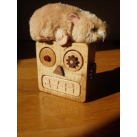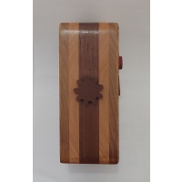 Angry Walter is a multi-step sequential discovery puzzle. It's made from roasted curly maple, Peruvian walnut, cherry, and padauk.