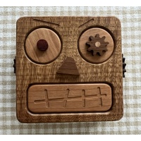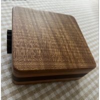 Size is 5x5.5x3 and made from quarter sawn roasted curly maple with very unusual grain pattern, padauk, cherry and Peruvian walnut.