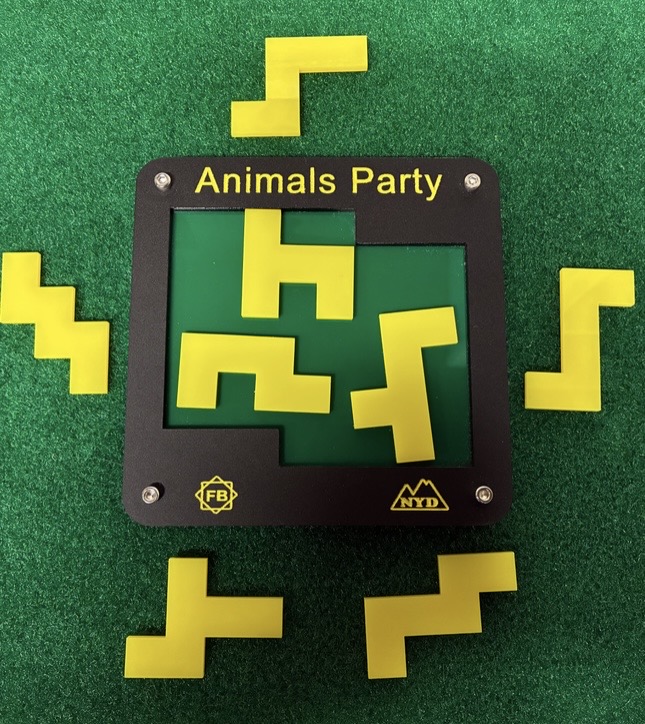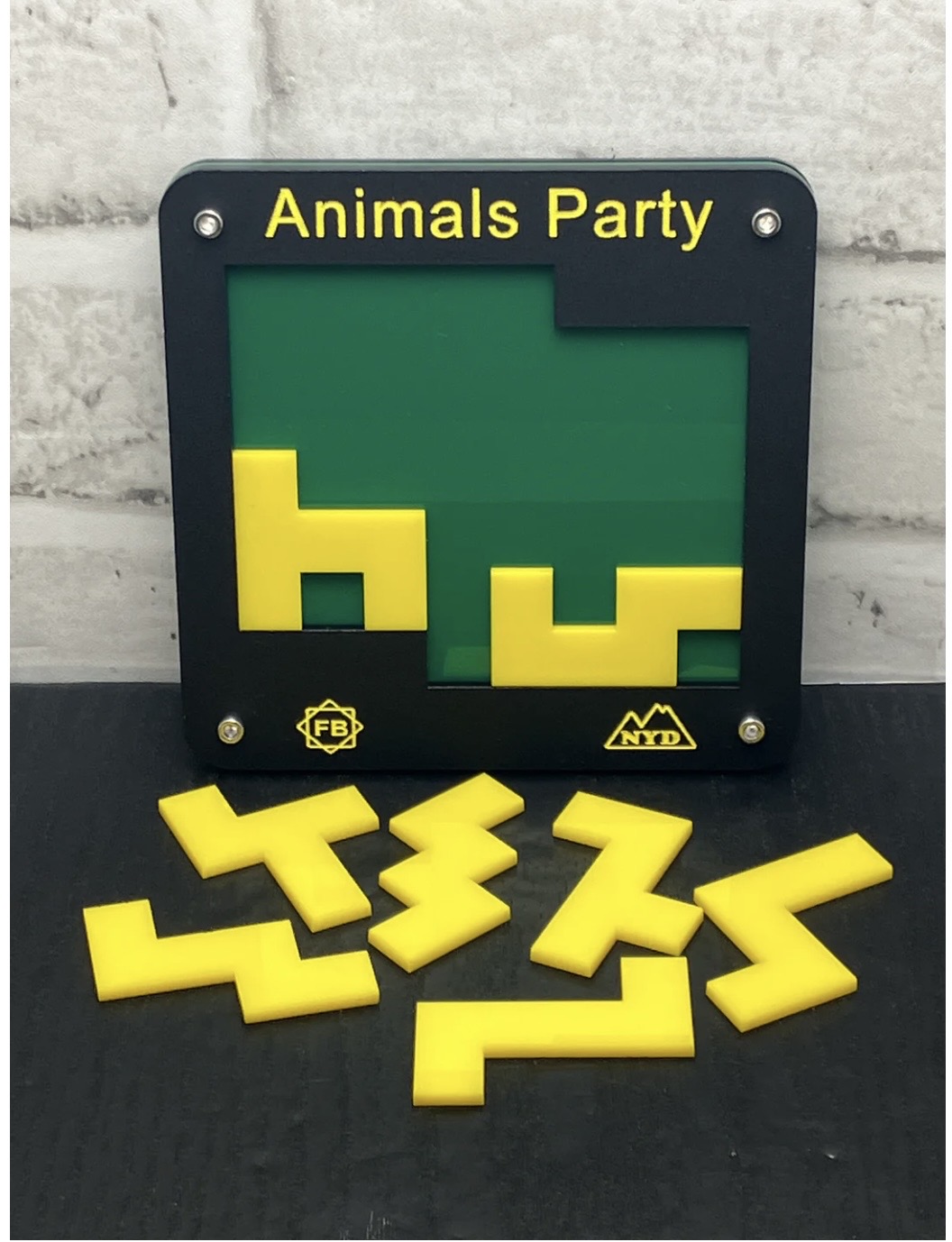 Animals Party. Designed by Frederic Boucher, and made by Nothing Yet Designs. Acrylic puzzle. Pack all 8 pieces into tray. 2 different challenges. One challenge on each side. Excellent condition!! Shipping in U.S.A. only. Buyer pays for shipping. Please wait to send payment until shipping cost is determined.