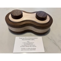 Apeiron is made from black walnut and maple.  Dimensions are 6.25” x 3.25” x 2.25”.