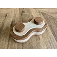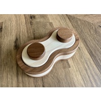 Apeiron is made from black walnut and maple.  Dimensions are 6.25” x 3.25” x 2.25”.