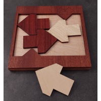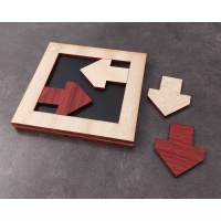 A 2 dimensional packing puzzle with 2 challenges. The goal is to pack 4 identical arrows in 2 different frames (front and back). I don't know who crafted this version but I can say that it's of good quality and pleasant to play. I am the original owner, purchased from Hendrik Haak. Excellent condition.