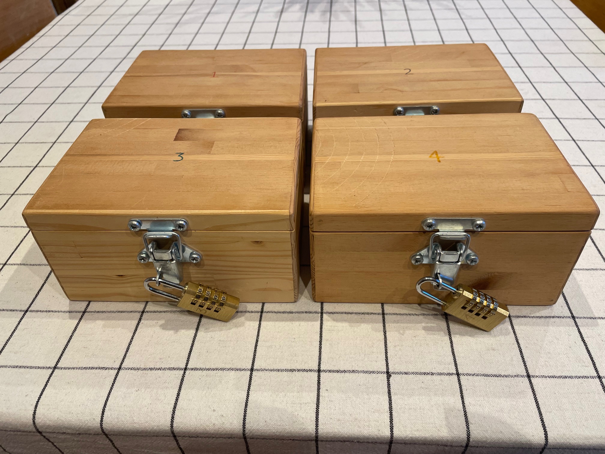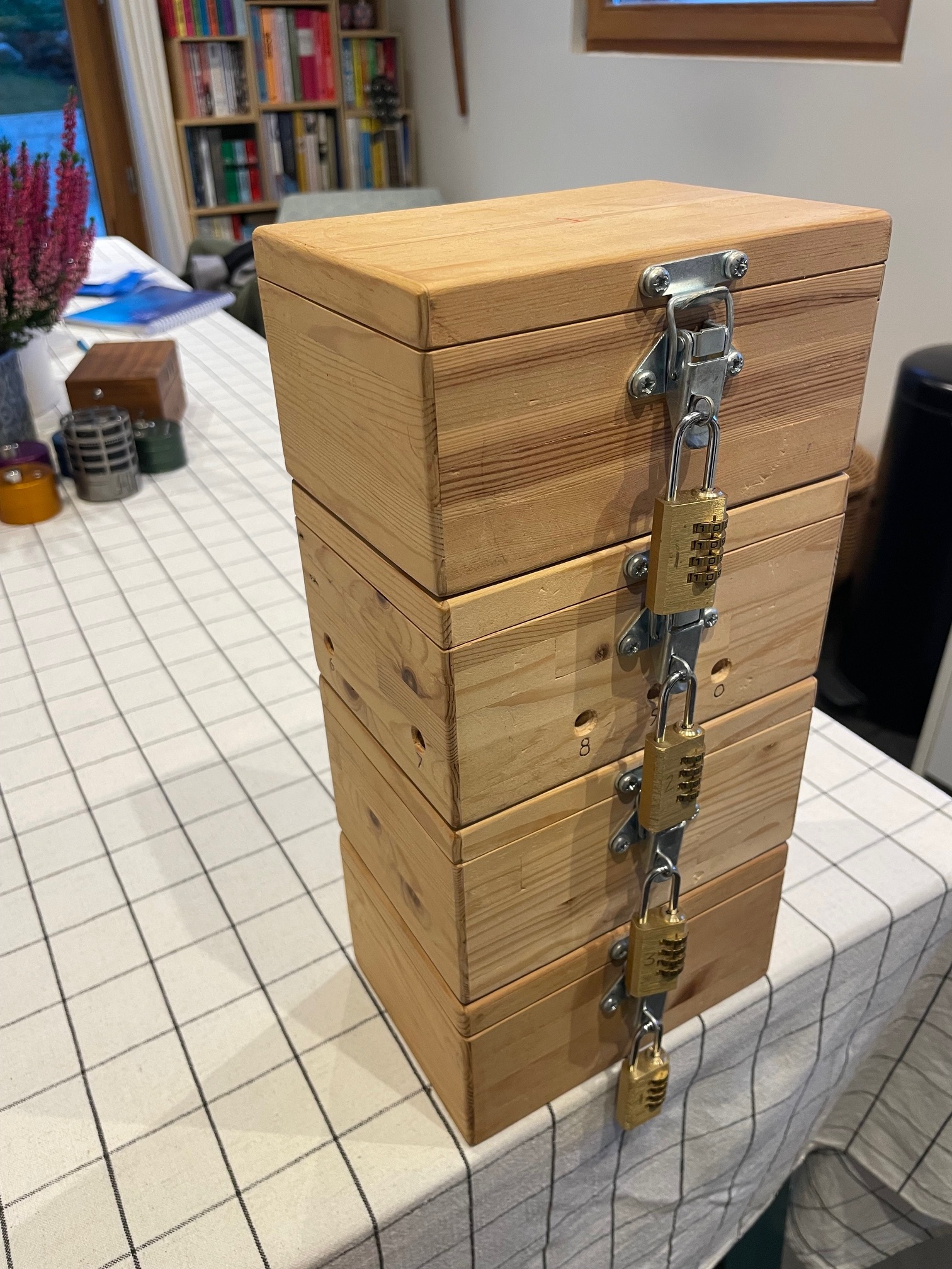 The wooden boxes are numbered and need to be opened in order. It’s all very obvious once you get going.