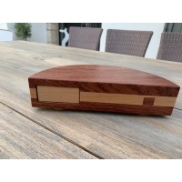 The dark grains of bubinga along with the light grains of European beech provide a beautiful contrast. Bad Moon measures 10" x 5" x 2.5", and is the largest DEDwood puzzle box to date.