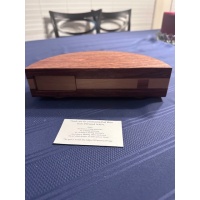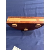 The dark grains of bubinga along with the light grains of European beech provide a beautiful contrast. Bad Moon measures 10" x 5" x 2.5", and is the largest DEDwood puzzle box to date