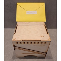 Selling Bananas, a limited edition, sequential discovery mechanical puzzle designed and built by Jon Keegan.  Excellent, like new condition.  Comes in its wooden original crate, with original cloth, metal instruction plate and plastic translucent stand.