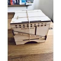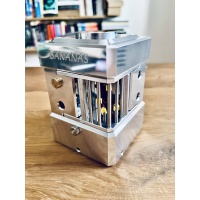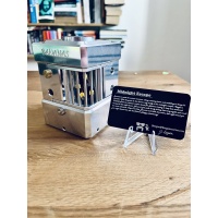 The puzzle has been solved twice, and as with all aluminium puzzles there are a fair few micro scratches here and there, but overall it’s in brilliant second hand condition. It comes with all the original bits and pieces, including a fantastically thematic wooden box, a plastic card that includes the puzzle instructions with a stand for the card, and a couple of nice thick micro fibre cloths for protection and post-solve cleaning. I also have the original shipping packaging which was excellent.