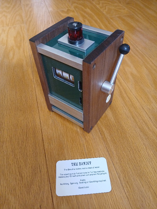 The Bandit is broken and in need of repair. To retrieve the jackpot coins you will need to find the tools to "fix" the machine and then retrieve your I.D card and silver coin to win the jackpot.