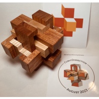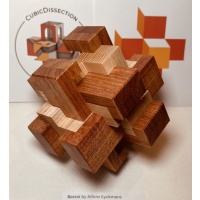 “Another great one from Belgian burr builder Alfons Eyckmans, Barzoi is a very unique design. A twelve piece burr with interaction between the inner and outer components almost as if it behaves like a nested burr. Six outer pieces overlap six inner pieces with an offset on each axis to make this puzzle stand out when assembled.