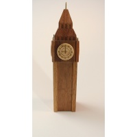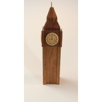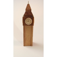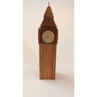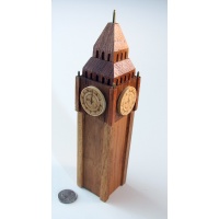 The puzzle is made from Papua New Guinean Rosewood, Western Australian Jarrah and Queensland Silver Ash. There are tools inside the puzzle made from brass and some magnets are included. Size: 220mm high to the tip of the spire. 55mm x 55mm clock face to clock face.