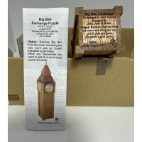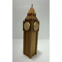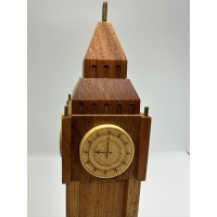 The puzzle is made from Papua New Guinean Rosewood, Western Australian Jarrah and Queensland Silver Ash. There are tools inside the puzzle made from brass and some magnets are included. Size: 220mm high to the tip of the spire. 55mm x 55mm clock face to clock face.