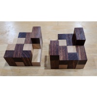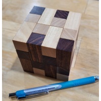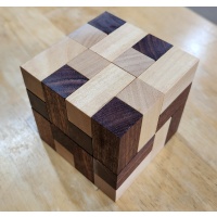 Bill Darrah loved to create cube puzzles... I think I have seen most of them now after buying his collection. However, Bill didn't lable everything... case in point. This is a stacking puzzle/cube designed by Bill. The woodworking is beautiful and makes a tight cube... when you dont look at crosseyed... but I don't know it's name. If someone has this one let me know.