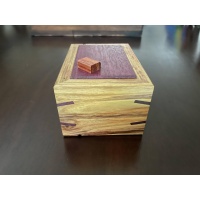 Blinded II by Dee Dixon is a sequential discovery puzzle box. It is a medium level puzzle. This is made from canarywood and purpleheart. This puzzle was solved once and then stored away in a room with 40% to 60% humidity. I will not ship outside the U.S.