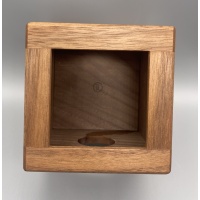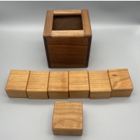 Pack 7 pieces into the box -  very difficult! Box disassembles using Allen wrench (not included) just in case you get yourself stuck. Note the glue stain on the inside of one side (see pic).