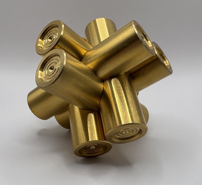 Like Brass Monkey 2, 3, 4 and 5….. Brass Monkey Sixential Discovery (BMSD) looks like a "standard" burr puzzle on the surface but hides even more trickery than usual beneath. It requires multiple discoveries to achieve the ultimate goal: Can you find the bananas and feed them to the monkey? There are in excess of ten steps needed to find the bananas.