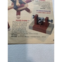 Bolted Closed, also called "Metal Ball Remove"- Bits and Pieces #07-7382, design by Constantin. Wood posts are chipped, see pix. There's also a label in French on the bottom of the puzzle. I can't read it.