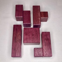 Our second release of Bonbon was constructed from the same Butternut we used previously. Butternut is usually a very soft wood, but we found an unusually dense billet with some nice figure and curl for this project. The pieces are made from Purpleheart, a dense hardwood. The fit and finish meet our accustomed accuracy, with parts sliding precisely and smoothly”