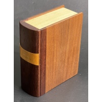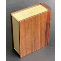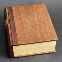 NOTE: While generally this puzzle is in very good condition, the opening mechanism is sticky. I (a non-woodworker) believe this could be solved with a bit of sanding. I can't say more without spoiling how it works.