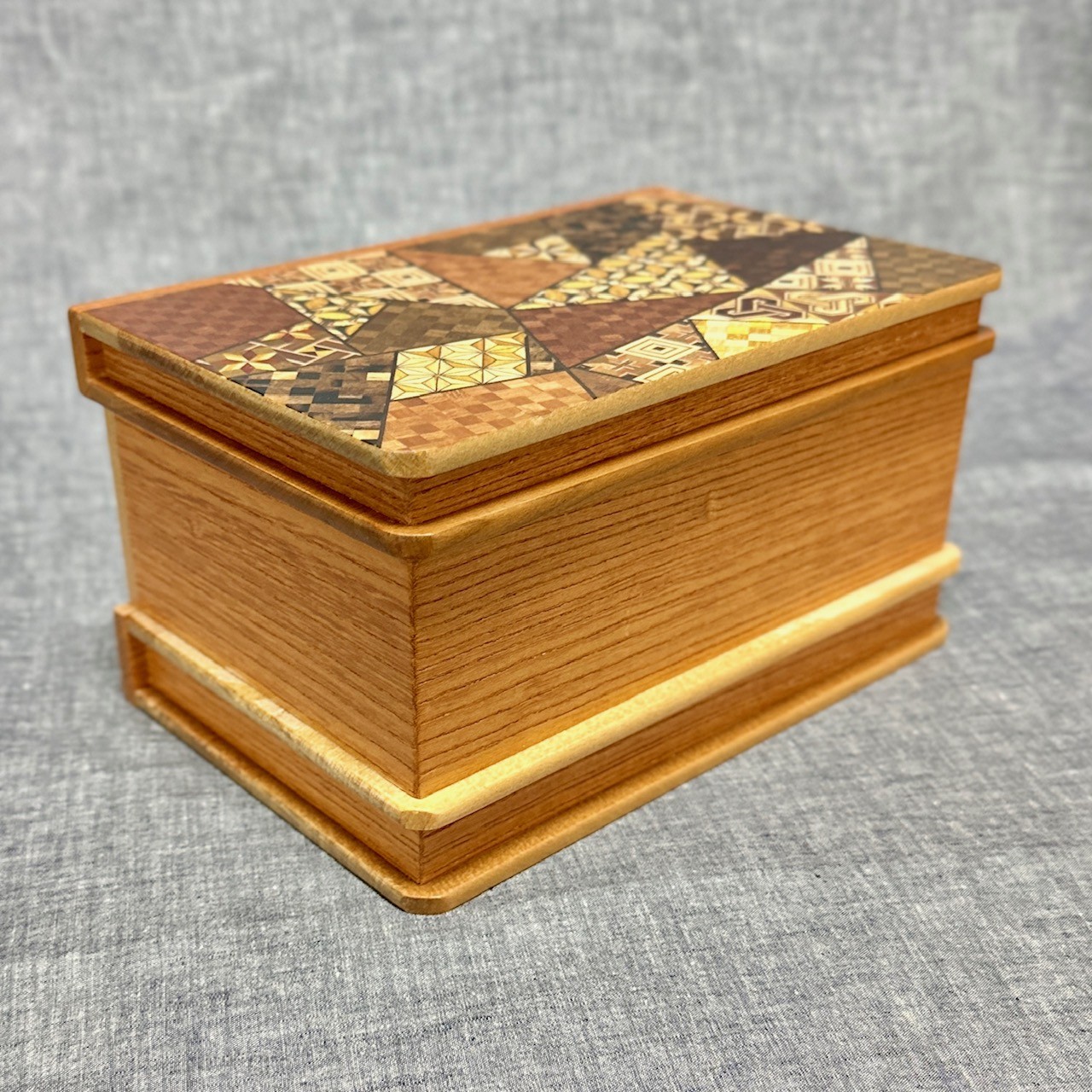 This traditional Japanese Yosegi(marquetry) style secret box called “Hongata-Ruiji” It means “Book Type - Similarity”.