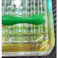The Subway is a very cute pocket-sized maze puzzle, which was what attracted my attention in the first place. Measuring a very handy 9cm x 7.5cm x 1.5cm, it is made up of five layers of clear acrylic joined together. Atop the puzzle is a little red "rod" or magnetic wand which is used (from the outside) to navigate a very tiny magnetic disc inside the maze from the start point to the end point, from HOME to WORK and back HOME.