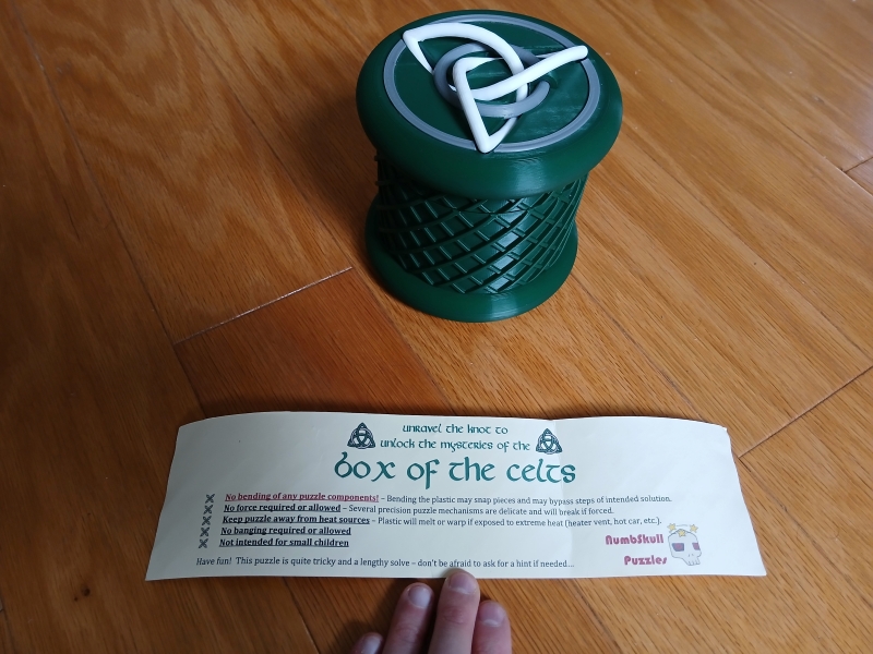 For any bidders who may not know about this, but Matt is coming out with a brand new puzzle which is a sequel to Box of the Celts! Fleur de Keys is a wild new puzzle, far more elaborate print, more parts and complexity than BotC, and much more sections to solve and beat compared to the 5 we have with this puzzle! If BotC won a Jury Honorable Mention at IPP 2021, then I can't imagine how well FdK is going to do at the IPP and this is your chance to grab a copy before trying FdK!