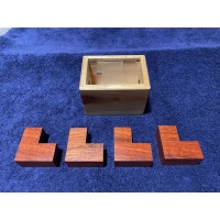 Box Rebellion was previously released as an IPP exchange puzzle in 2004 by Walt Hoppe. Similar to the wildly popular 4L design, Box Rebellion is a tricky multiple-step packing puzzle with a single solution. The four identical pieces must be packed into the box but are blocked by an odd-shaped acrylic slider over the top which only allows one side of the box to be accessible at a time. The solution includes multiple rotations.