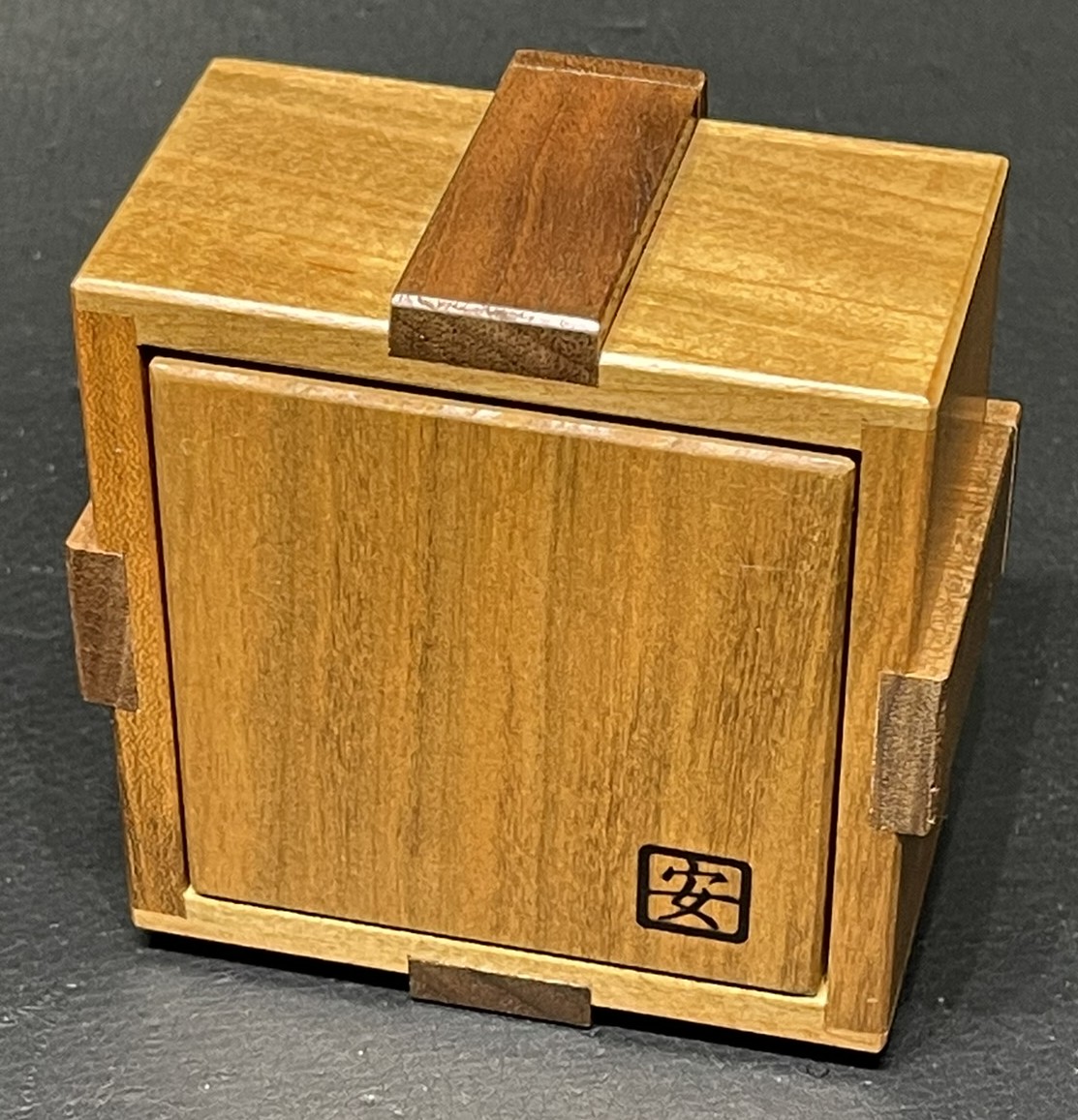 I have solved and reset this puzzle several times.  It works great!Per the Karakuri website:Another Aquarius Drawer (Aquarius Drawer 2)craftsmanHiroshi IwaharaITEMRF-57Created11/2017Size(box body)72×129×60mmSize(storage part)*****MaterialJapanese raisin tree, padauk, magnolia, wendge, keyakiFacebookTwitter共有This work was designed as a Christmas present for 2017.More here: https://karakuri.gr.jp/en/products/rf-57/The puzzle is located in the United States, but I will ship worldwide.Custo...
