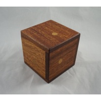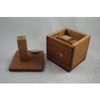 The faces of the cube are attached to the end of pieces of a six-piece burr. Made from mahogany.