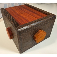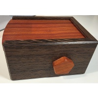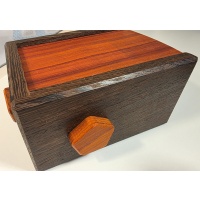 Boxed In is crafted using wenge and padauk. It measures 6.5 x 5.5 x 3 inches.